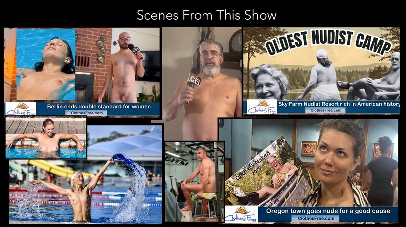 ClothesFree TV with Nudes in the News, reported by live nudescasters. Over 50 hours of videos in the members’ area. Plus all the upcoming new shows now in 4K quality. Our shows feature news, events, places, music videos, Naturist Living, Naturist Projects and members’ contributions to the show.