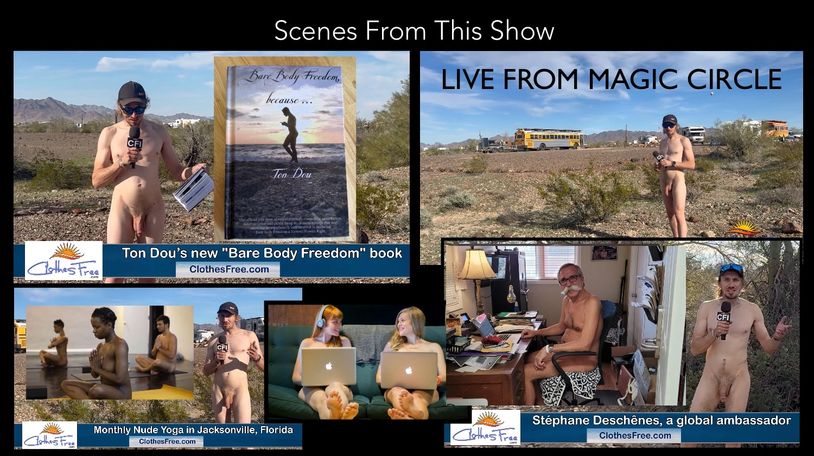 New show. Ton Dou is back with new "Bare Body Freedom" book. Stéphane Deschênes, a global ambassador. National Working Naked Day. Super chill nude model 500 times. Monthly Nude Yoga in Jacksonville, Florida.
